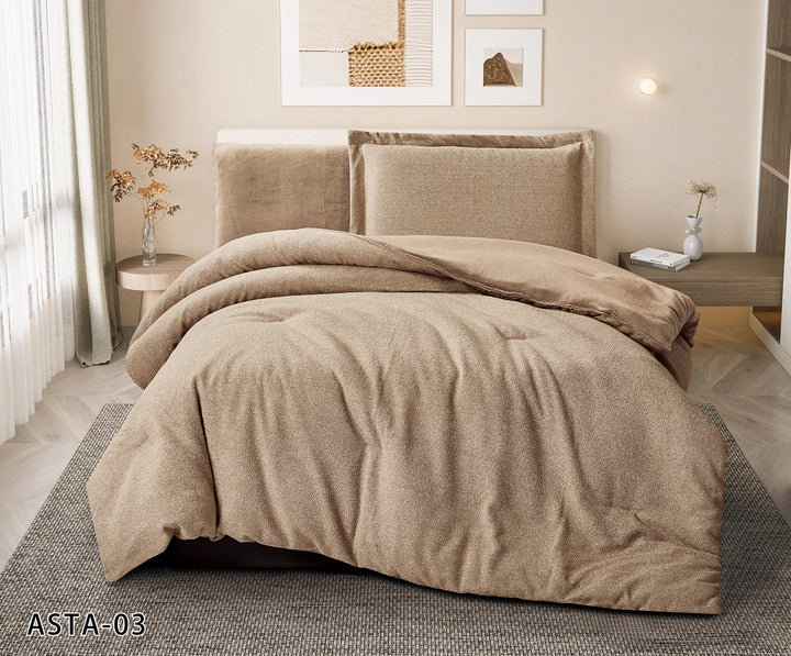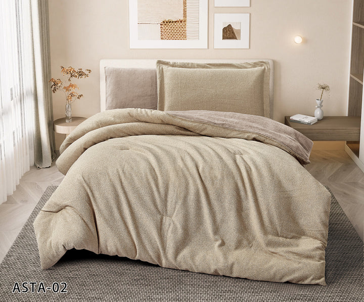 طقم لحاف استا نسج لإظهار التفاصيل الدقيقة التي يحتويها من الراحة والأناقة. طقم لحاف سان مارينو سيمفونية من الفخامة والأناقة، فتجعل غرفة من نومك واحة ترفة.