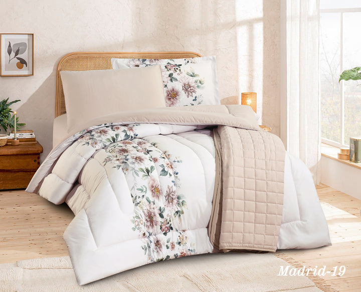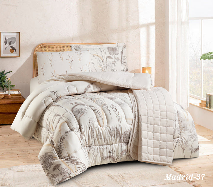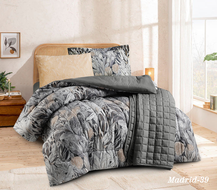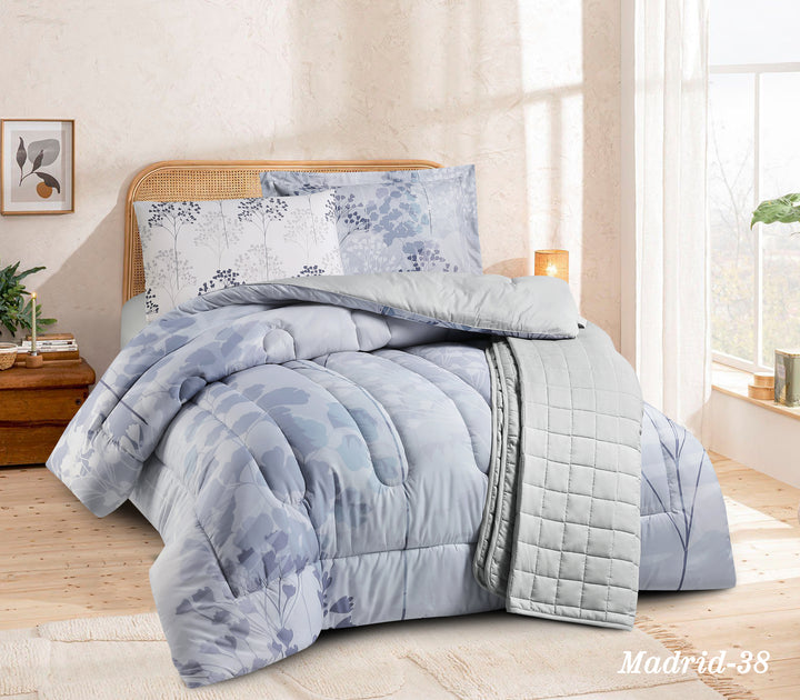 قم بتحويل غرفة نومك إلى ملاذ من الراحة والأناقة مع طقم لحاف مدريد. صمم طقم مدريد المكون من 9 قطع لتوفير نعومة ومتانة وجاذبية جمالية لا مثيل لها، مما يجعل من طقم مدريد الإضافة المثالية لأي غرفة نوم.