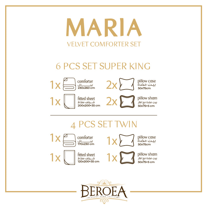 طقم لحاف ماريا نسج لإظهار التفاصيل الدقيقة التي يحتويها من الراحة والأناقة. طقم لحاف سان مارينو سيمفونية من الفخامة والأناقة، فتجعل غرفة من نومك واحة ترفة.
