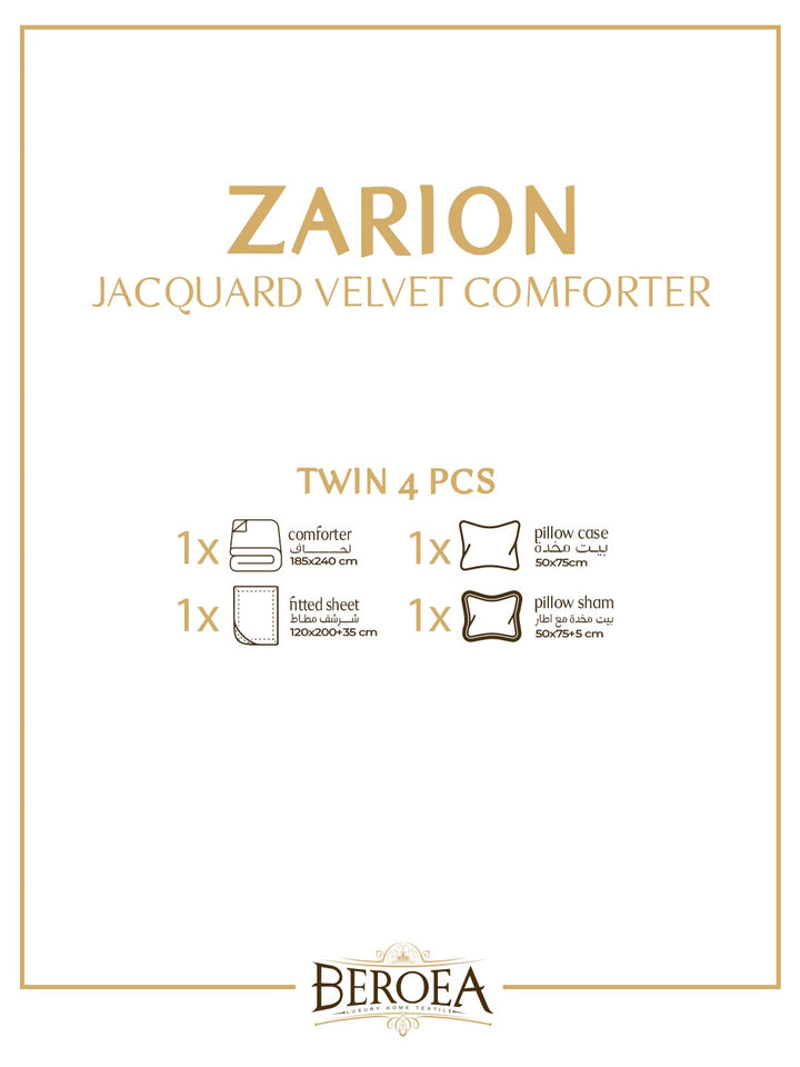 لحاف زاريون ، تصميم الجاكار الساحر الذي يليق فقط بالقماش المخملي الاستثنائي وملمسه الناعم المريح.