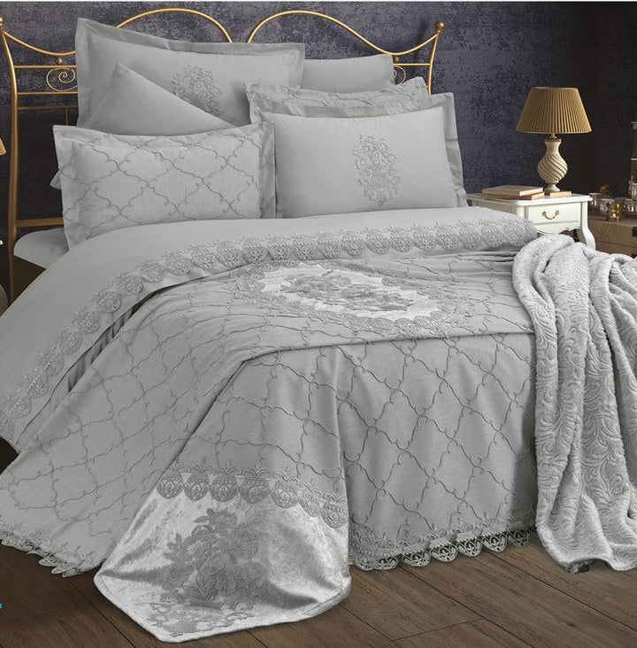 Make your coming life a warm haven for you and your soul mate, with Begonia Wedding Comforter Set, Full set consisting of 8 pieces to give your bed unparalleled elegance.